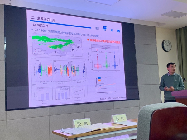 主讲人刘召刚,中国科学院地理科学与资源研究所在读博士生,报告题目为《生态系统对气候变化的响应与适应》。在本次报告中,刘召刚同学从生物物理恒定性理论,CSR策略,叶片经济性谱等理论基础对比叶面积在不同时空尺度下对环境的不同响应进行说明。